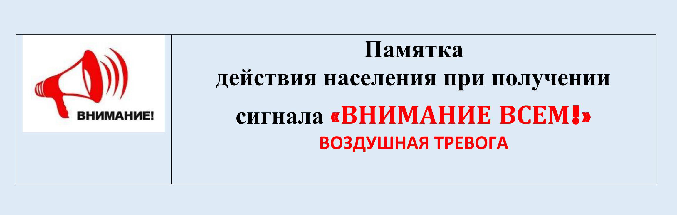 28 ноября 2022 года: Памятка действия населения при получении сигнала "ВНИМАНИЕ ВСЕМ!" воздушная тревога