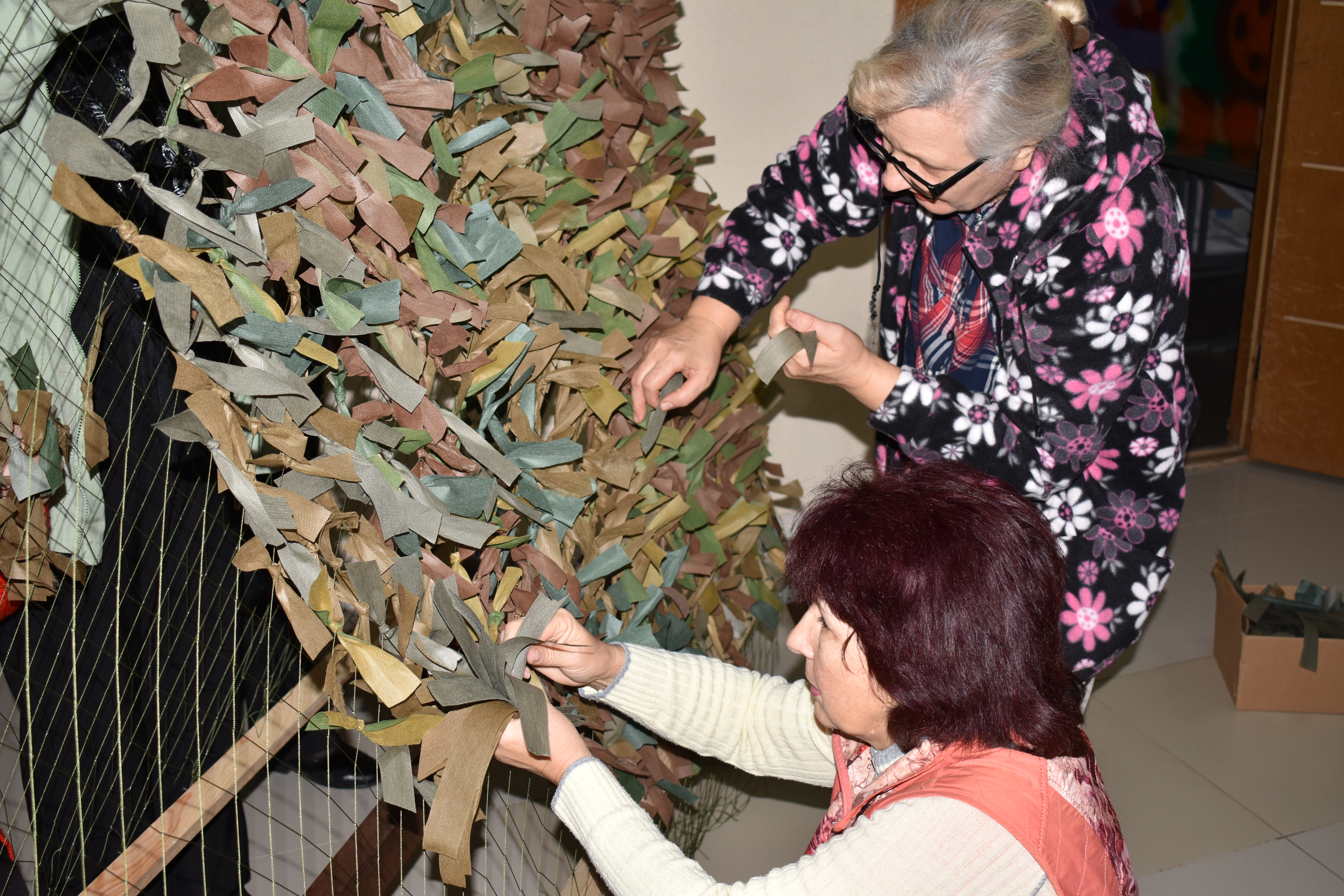 12 марта 2025 года: В Красноперекопском городском Дворце культуры продолжает действовать патриотическая акция «Плету Победу» по плетению маскировочных сетей для участников специальной военной операции.