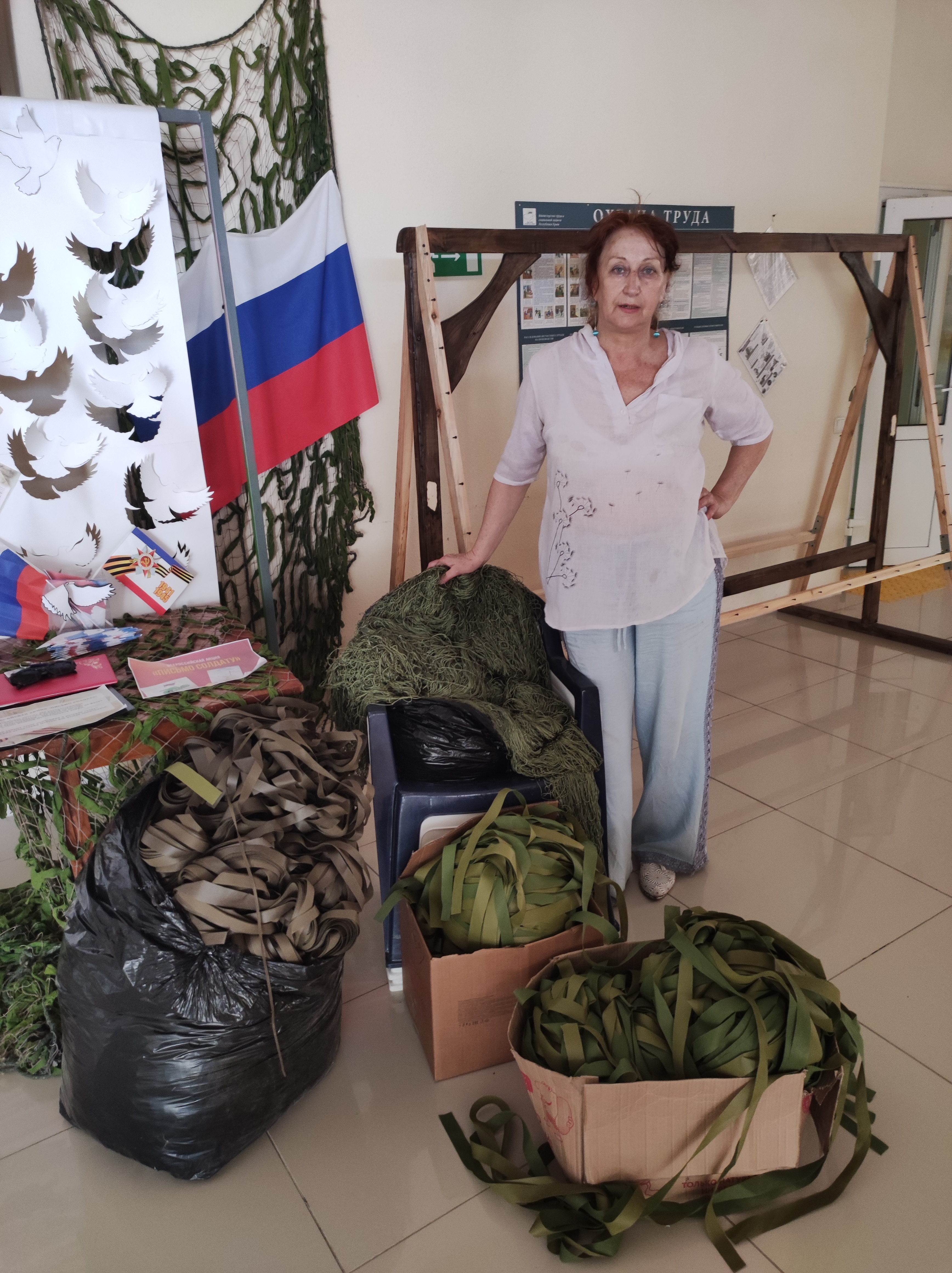 15 августа 2024 года: В Красноперекопском городском Дворце культуры продолжает действовать патриотическая акция «Плету Победу» по плетению маскировочных сетей для участников специальной военной операции.